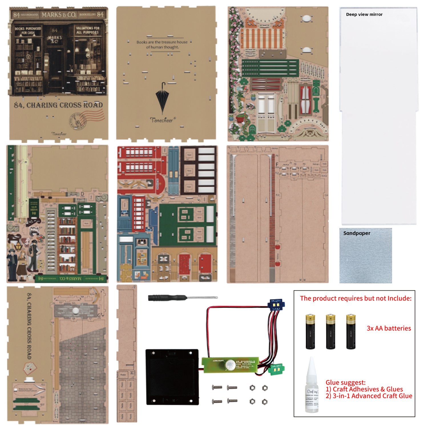 Tauchen Sie mit dem Book Nook in das London der 1920er-Jahre ein. Dieses Miniatur-Meisterwerk rekonstruiert die legendäre Buchhandlung Marks & Co. Dieses ikonische britische Geschäft steht seit 1920 an der Charing Cross Road. Im Mittelpunkt der Szene studiert der Besitzer Frank handgeschriebene Seiten aus der Korrespondenz der amerikanischen Autorin Helene Hanff.