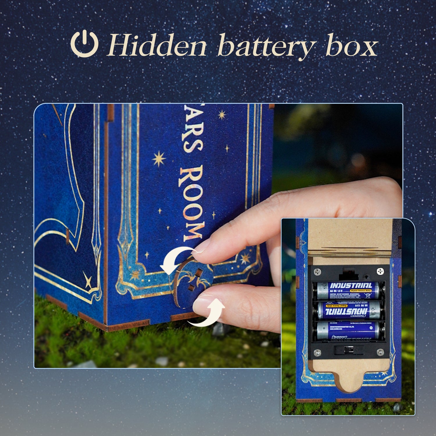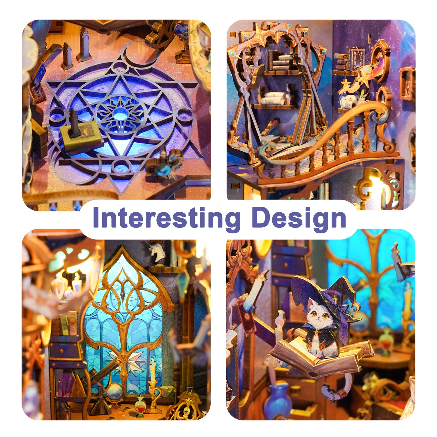 • LED-Beleuchtung: Zaubert eine warme, mystische Lichtstimmung in die Miniaturbibliothek